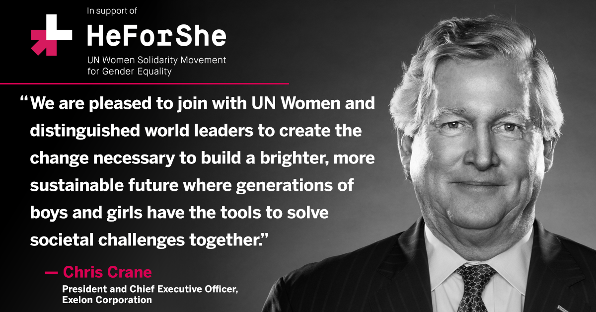 But we can and we will do more to create a gender-diverse Exelon. We know that an inclusive culture is the foundation for greater innovation, opportunities for growth, and market competitiveness. In partnership with the HeForShe campaign, our intention is to inspire and influence our employees and other energy companies to take action.